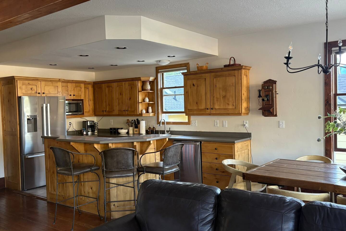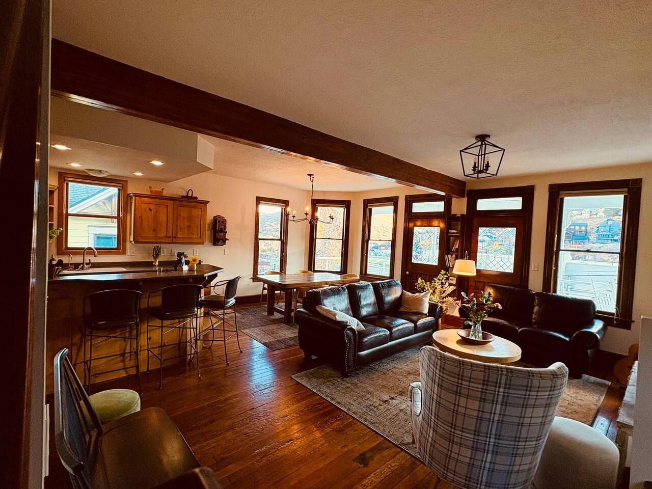 You’ll have ample space and comfort in this historic multi-level Old Town home, perfect for families and groups up to 10 people: 🛏️ Bedroom 1: King Bed 🛏️ Bedroom 2: King Bed 🛏️ Bedroom 3: Queen Bed 🛏️ Bedroom 4: Two Twin Beds 🛏️ Den: Pullout Sleeper Sofa (Full) This beautifully updated Old Town residence blends historic charm with creature comforts. The main living floor features an open flow between the chef’s kitchen, dining area, fireplace, and patio – ideal for après-ski gatherings. Enjoy thoughtful amenities throughout the home, including: ➤ Fully equipped chef’s kitchen ➤ Cozy sitting room centered around a gas fireplace ➤ Fast, reliable WiFi for streaming and remote work ➤ Laptop-friendly workspaces throughout ➤ Heat across all levels for ultimate comfort ➤ Full-size washer + dryer setup Outdoor spaces include: ➤ 6-person hot tub for unwinding after skiing or hiking ➤ Private balconies with mountain and Old Town views ➤ Outdoor seating (seasonal) ⚠️ Please note: This is a multi-level home with stairs throughout, which may not be suitable for guests with mobility limitations.