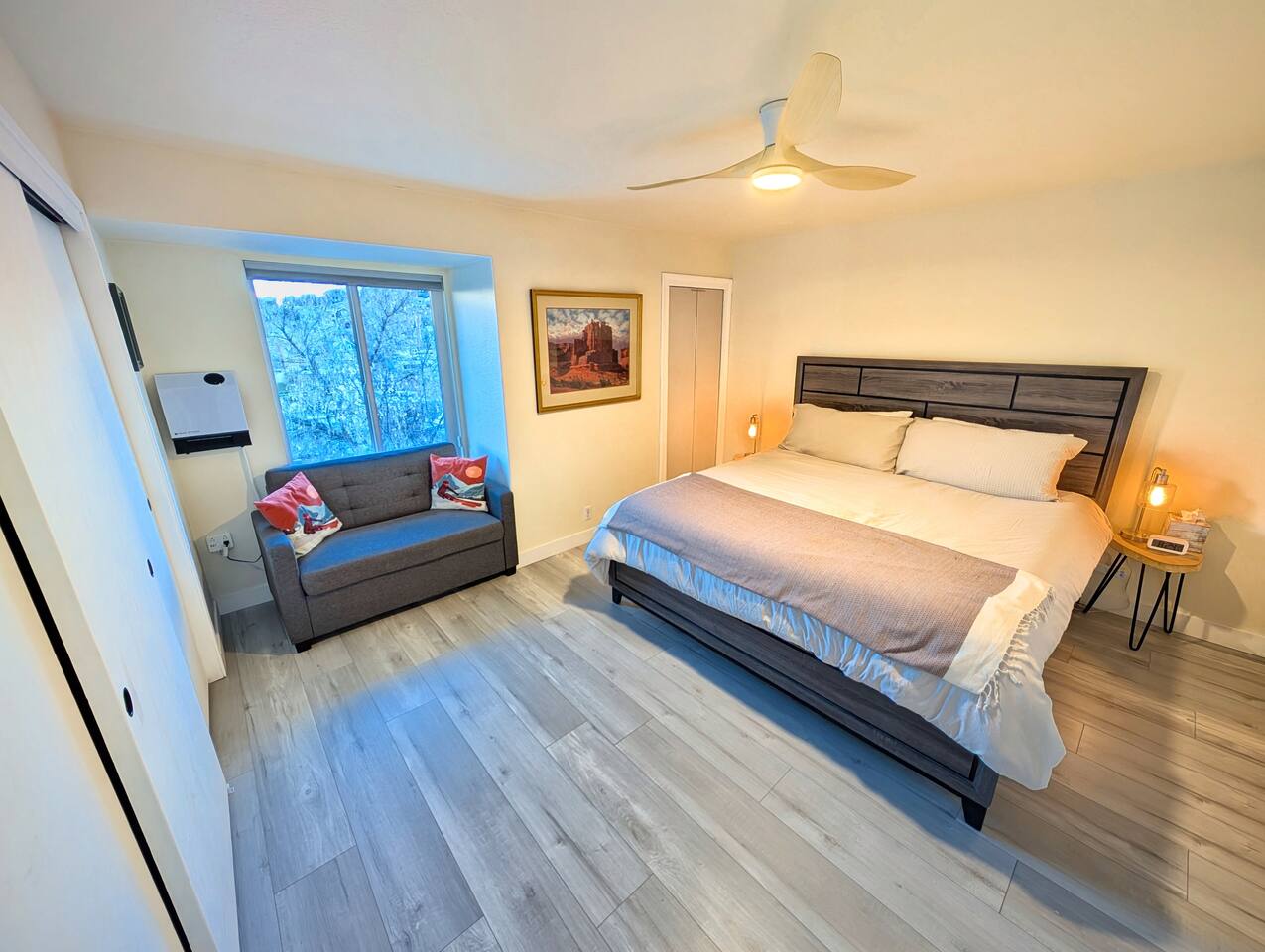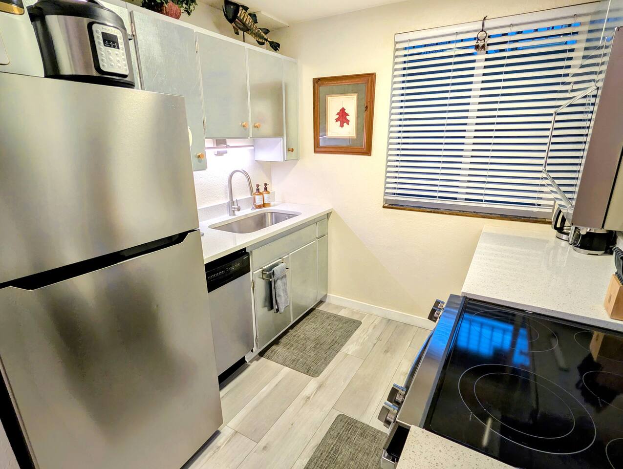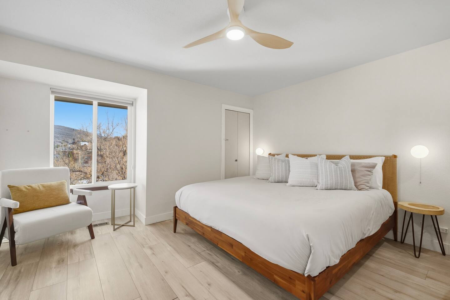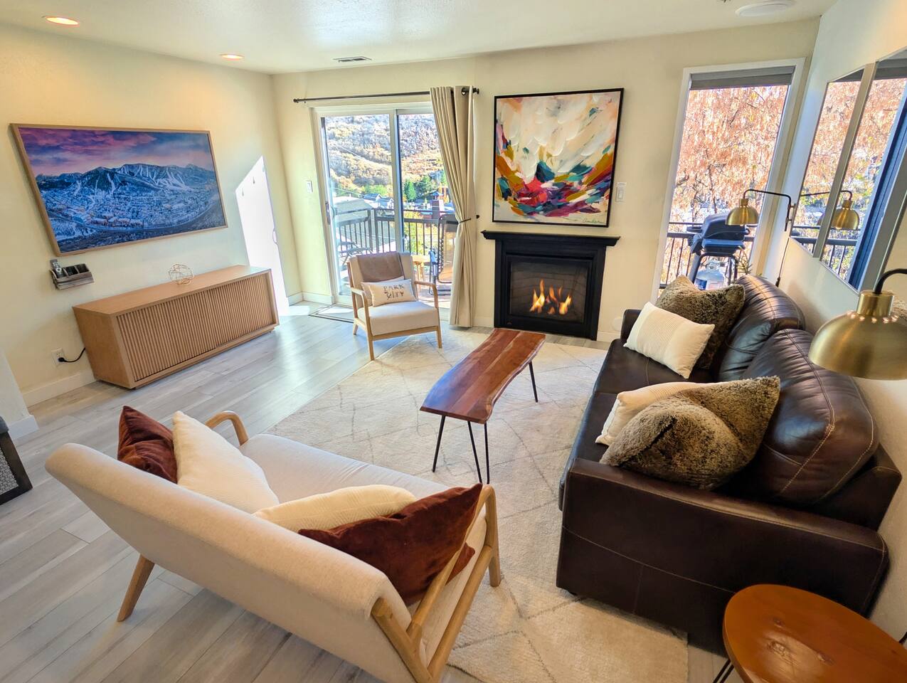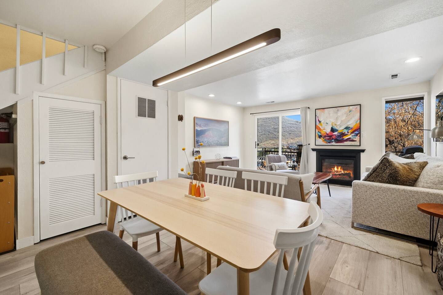 Highlights: Mountain & Old Town Views | Walkable Location – No Car Needed! | Private Balcony w/ BBQ | Great for Remote Work | Central Heat & A/C | Free Parking 🛏️ Bedroom 1: King Bed, Sleeper Chair 🛏️ Bedroom 2: Queen Bed 🛏️ Living Room: Sleeper Sofa (Queen) 🛏️ Air Mattress & Pack 'n Play also available upon request This Old Town condo is an ideal home base to rest and recharge: ➤ Indoor Comforts: 65" smart TV, dining area for 6, gas fireplace, washer/dryer ➤ Kitchen: Fully equipped with Instant Pot, toaster, blender, food processor, knife set, spices, wine glasses, as well as drip, pour over, and French press coffee brewing ➤ Fast WiFi: Reliable 600 Mbps+ WiFi for concurrent video calls and streaming ➤ Working from Condo: Laptop-friendly work spaces + desk with 24" monitor ➤ Climate Control: Central forced air A/C + heat, gas fireplace in living room ➤ Parking: Off-street for 2 vehicles up to 350" ⚠️ This property might not be suitable for guests with limited mobility. Going down one flight of stairs is needed to reach the front door. Bedrooms and bathrooms are up a flight of stairs on the second floor. Walking to Main St. also requires going down several flights of stairs.