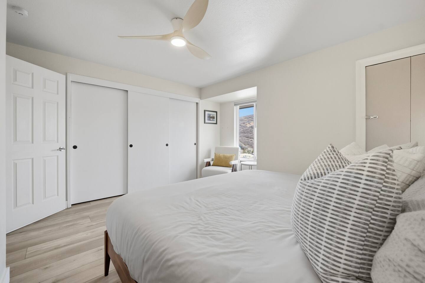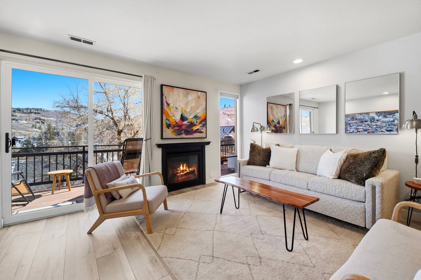 Book your trip to historic Park City and prepare for all-season adventures and mountain relaxation! Centrally located between Main St. and Park City Mountain, this 2 bed / 2 bath condo is steps to skiing, snowboarding, hiking, biking, eating, drinking, shopping, and more. Condo features full kitchen, patio with BBQ grill, fast wifi (350+ Mbps), central A/C + heat, and remote work space. Off street parking for 2 vehicles, in-unit washer/dryer, and other amenities make you feel right at home.