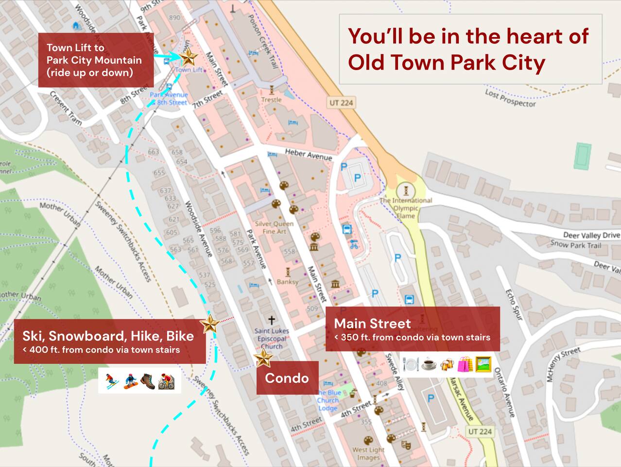You will have exclusive access to the entire condo as well as shared off-street parking for up to 2 vehicles but you can easily enjoy all that Park City has to offer without a vehicle. Self check-in with a smart door lock allows for flexibility to arrive on your own time. From the heart of Old Town Park City you'll be in the middle of everything: ➤ Main Street (walkable): Restaurants, bars, shops, galleries, nightlife, and more ➤ Outdoor Play: Park City Mountain Resort Quit 'N Time run (steps away), Park City Mountain Resort Town Lift, Deer Valley Resort, Soldier Hollow (21 miles) ➤ Things to Do & See: Park City Museum (steps away), Utah Olympic Park (8.3 miles), Alf Engen Ski Museum (8.3 miles), Temple Square (34.9 miles) ➤ Airport: Salt Lake City International Airport (37 miles) ⚠️ Ski/snowboard early season? Walking to Park City Mountain requires the Quit 'N Time run and Town Lift to be open, providing access for all of Old Town. For past seasons, they opened in early/mid December but depending on snow, it could be later or earlier. If access via Quit 'N Time + Town Lift isn't available, the Mountain Village base can be reached by free bus or ~5 minute drive.