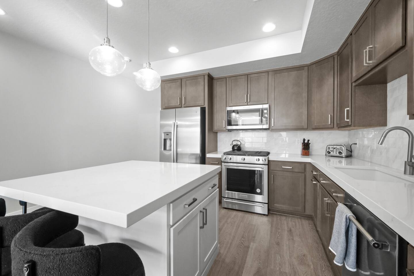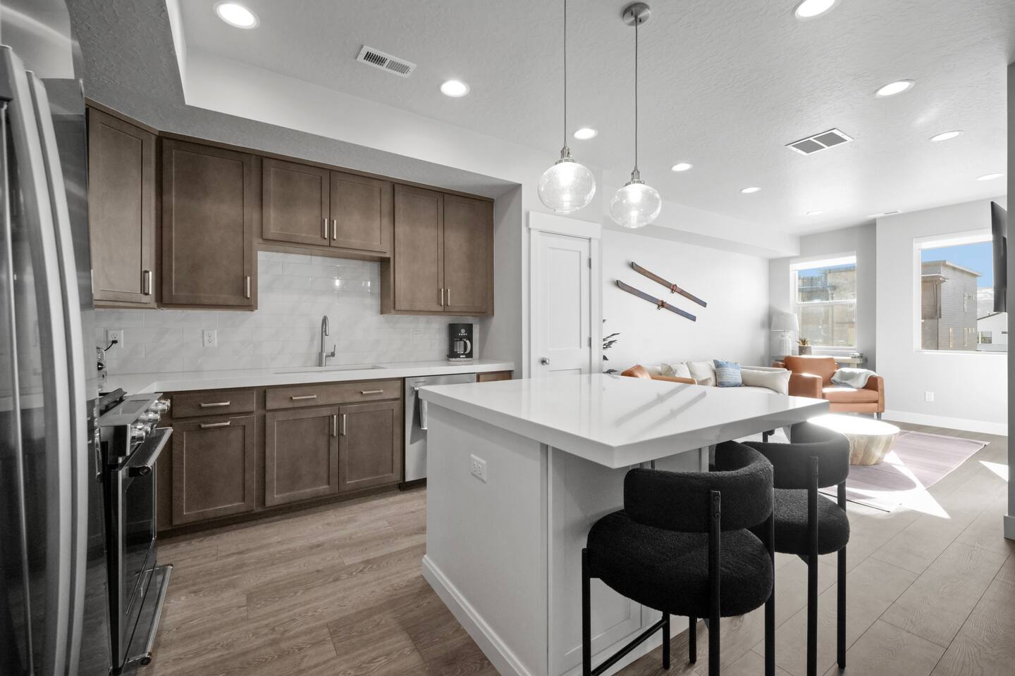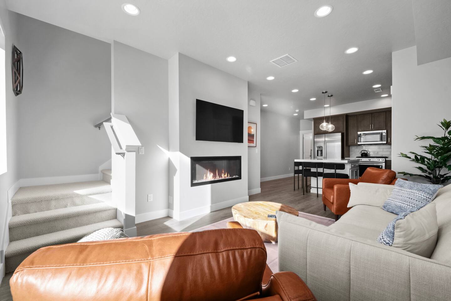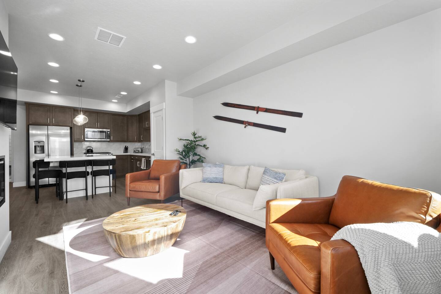 This Park City townhome is located in Silver Creek, a peaceful part of town, providing the ideal balance between privacy, tranquility, and convenience. Thoughtfully designed with 3 bedrooms and 3 full bathrooms, there is plenty of space for up to 7 people. The three-level townhome has lots of open spaces featuring a sun drenched living room, flowing into a professional-grade kitchen and large island for enjoying your meals, playing games, or sipping your evening beverage. Bunk room and full bathroom on the main level with two additional bedrooms and full bathrooms upstairs complete with full-sized washer and dryer. You’ll have everything you need to enjoy Park City in comfort: ➤ Infrared sauna for 2-3 people ➤ Chef’s kitchen featuring KitchenAid gas range ➤ Open living room with panoramic mountain views ➤ Large kitchen island that seats for 4 people ➤ Tons of natural night, views of the mountains in all directions ➤ 3 full bathrooms so everyone can bathe when they want ➤ 55” smart TV to enjoy movies or your favorite series ➤ Reliable and fast WiFi for video meetings and streaming ➤ Large storage area for skis, snowboards, and all of your gear ➤ Full-size washer and dryer for all of your laundry ➤ One-car garage with plenty of free outside parking Get a good night’s rest after you adventures in the large bedrooms: 🛏️ Bedroom 1: King bed, en suite full bathroom 🛏️ Bedroom 2: Queen bed, en suite full bathroom 🛏️ Bedroom 3: Bunk bed (double + twin), hallway full bathroom