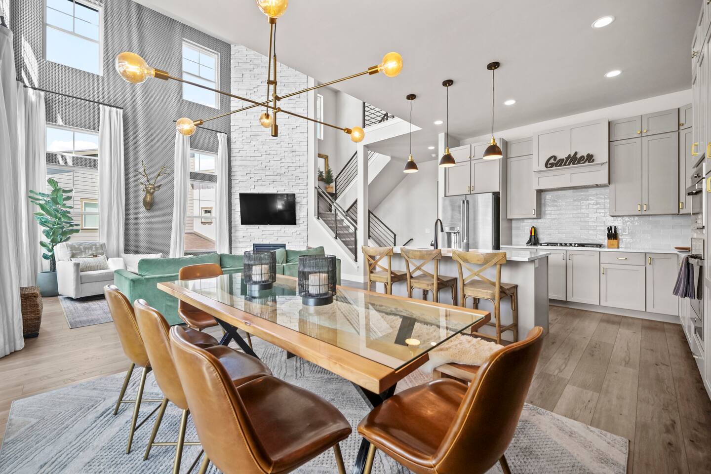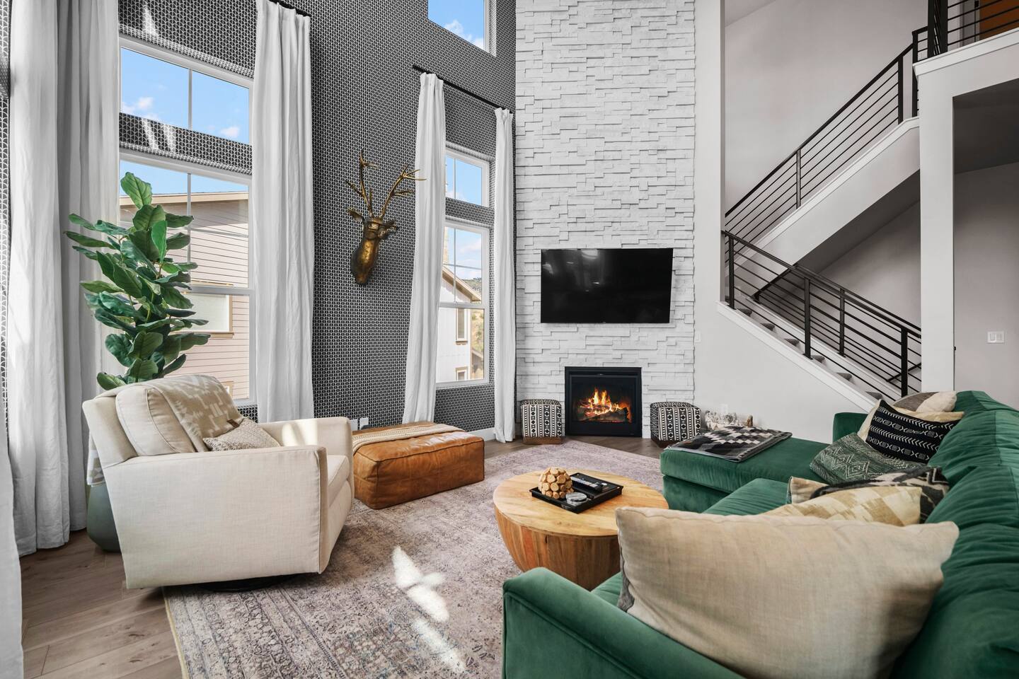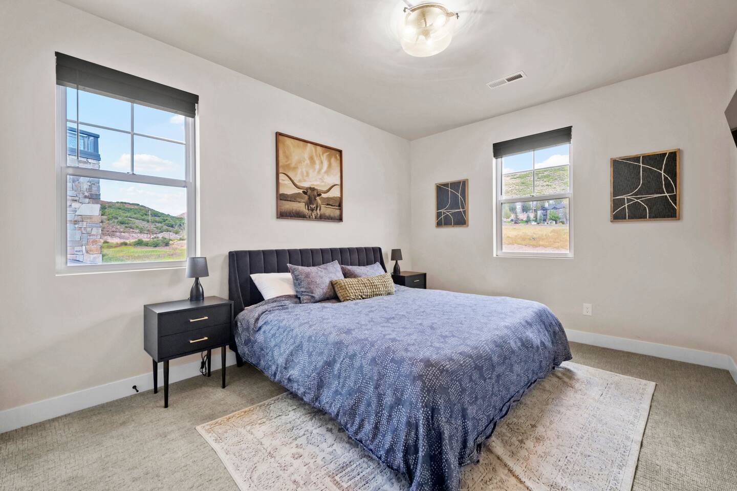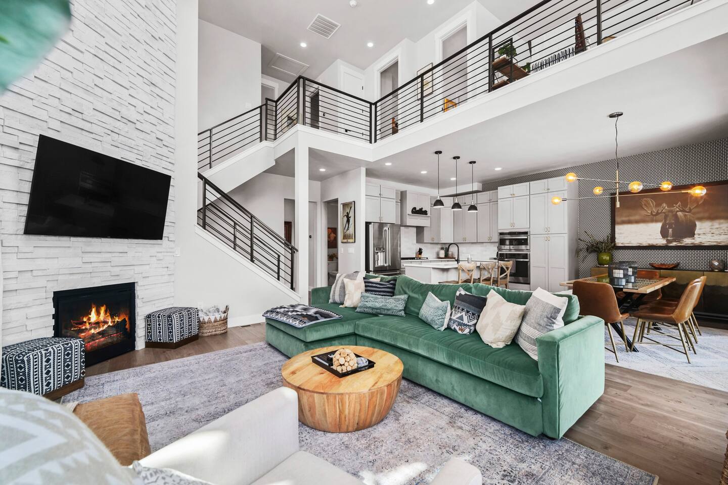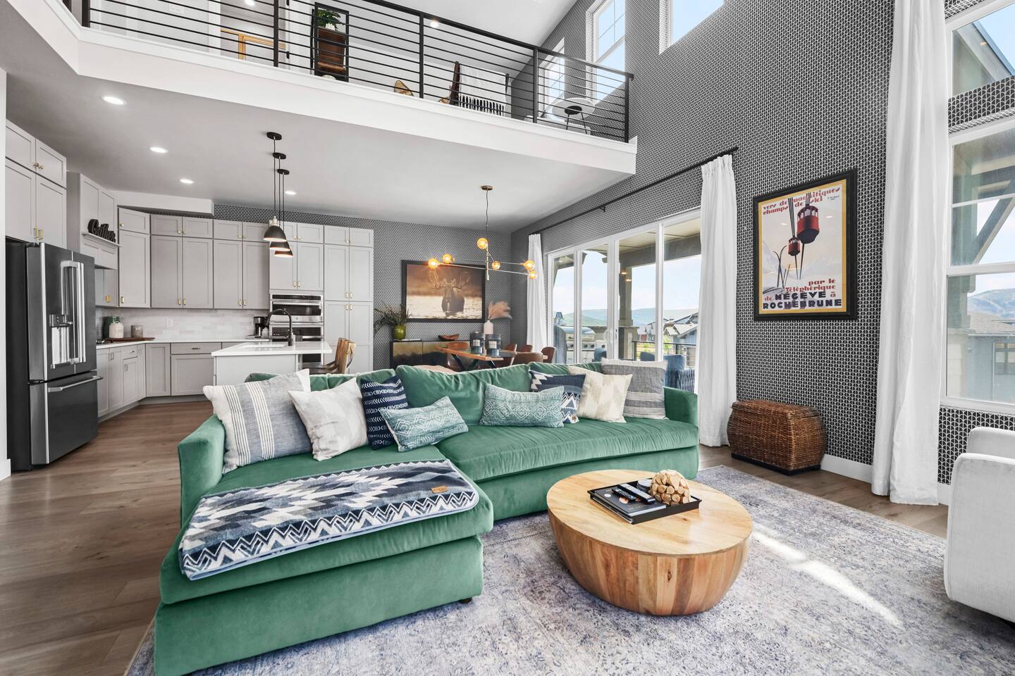 Highlights: Mountain & Reservoir Views | Peaceful Setting | Minutes to Skiing, Dining & Shops | Sleeps 12 | Great for Remote Work 🛏 Bedroom 1: King Bed 🛏 Bedroom 2: King Bed 🛏 Bedroom 3: Two Bunk Beds (4 Beds) 🛋 Bonus Loft: Queen Fold-Out 🛁 3 Full Bathrooms + Powder Room with modern, spa-like finishes ➤ Indoor Comforts: Smart TV, open living/dining area, fireplace, washer/dryer ➤ Kitchen: Fully equipped with modern appliances, cookware, coffee setup, and essentials ➤ Connectivity: Fast Wi-Fi, remote-friendly work spaces ➤ Climate Control: Central heat + A/C, gas fireplace in the living room ➤ Parking: Garage (2 car) + easy driveway parking available